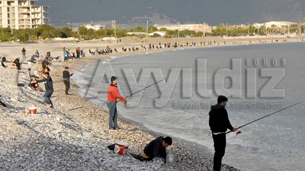 Demre ilçesinde, mendik balığı akını olduğunu duyanlar amatör olta balıkçıları sahile akın etti.