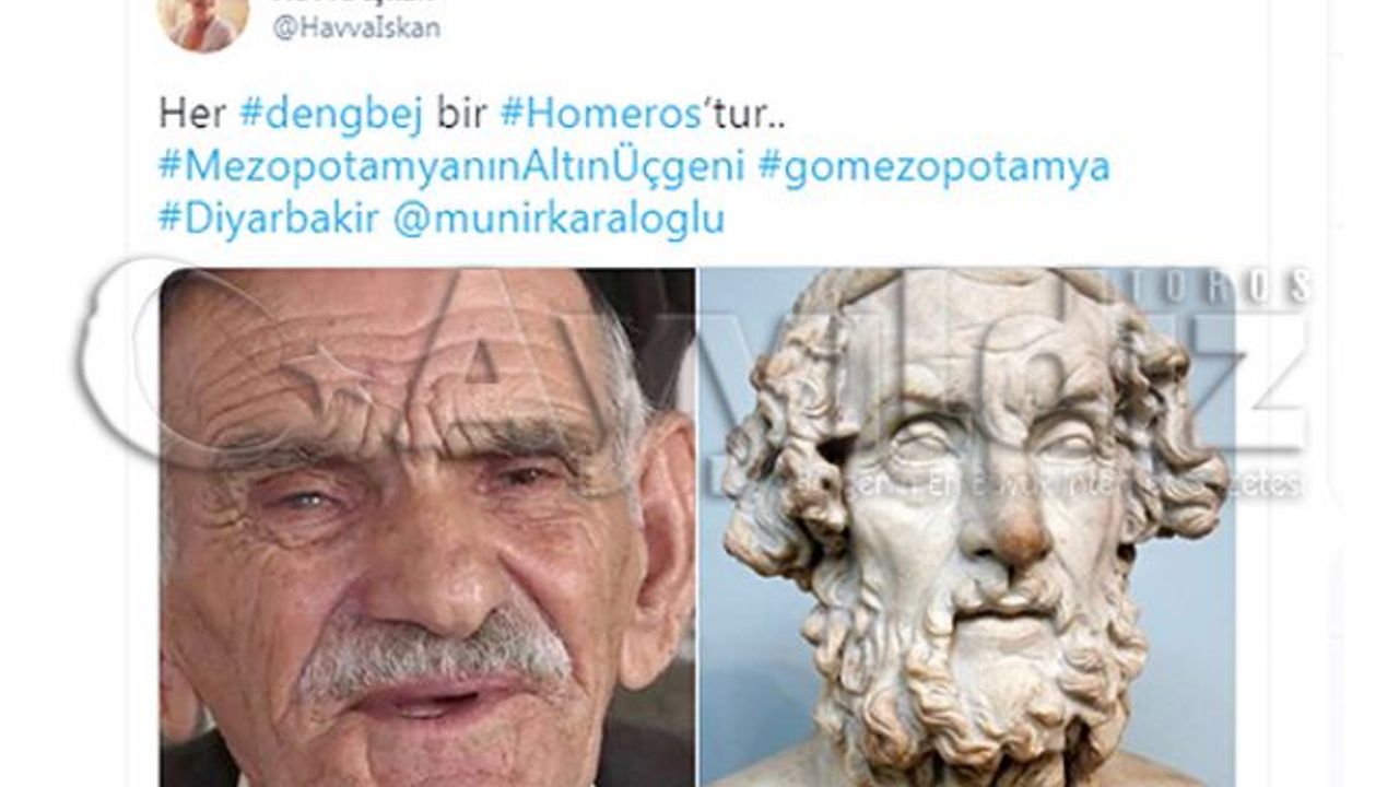 Prof. Dr. Işık, bu benzetmeyle ilgili sosyal medya hesabından da Diyarbakırlı dengbej Seyithan Boyacı ve Homeros'un yan yana fotoğrafıyla 'Her dengbej bir Homeros'tur' paylaşımında bulundu. Prof. Dr. Işık, Homeros'un Helenistik dönemdeki portresiyle dengbej Seyithan Boyacı'nın çok benzediğini de söyledi. DHA